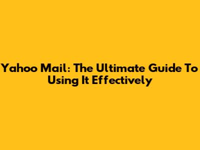 Yahoo Mail: The Ultimate Guide To Using It Effectively