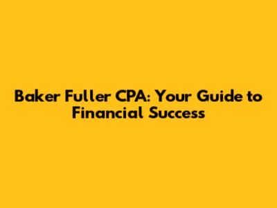 Hey guys! Ever feel like the world of finance is a giant, confusing maze? Tax season got you stressed? Well, fear not! Today, we're diving deep into the world of Baker Fuller CPA, a firm that's been helping individuals and businesses navigate the financial landscape for years. We'll explore what makes them stand out, the services they offer, and why having a good CPA is like having a financial superhero on your side. So, grab a coffee, settle in, and let's unravel the secrets of financial success with Baker Fuller CPA!
