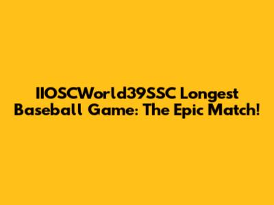 IIOSCWorld39SSC Longest Baseball Game: The Epic Match!