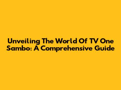 Unveiling The World Of TV One Sambo: A Comprehensive Guide
