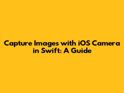 Capture Images With IOS Camera In Swift: A Guide