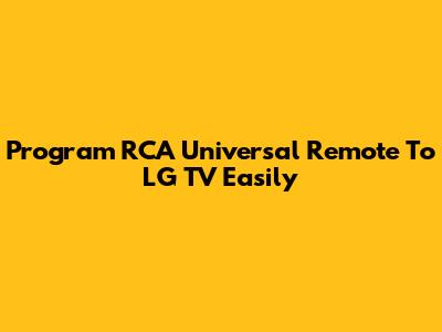 Program RCA Universal Remote To LG TV Easily