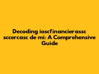 First, let's break down the components of "ioscfinancierassc sccercasc de mi." The string appears to be a combination of abbreviations, possible misspellings, and concatenated words, making it challenging to interpret at first glance. The "iosc" portion might refer to an organization, standard, or technology commonly abbreviated in a specific industry. "financierassc" seems related to finance, potentially alluding to financial associations, services, or concepts. The "sccercasc" part is more ambiguous but could be a shortened or misspelled reference to a search, certificate, or specific categorization within a system. Lastly, "de mi" suggests a connection to something personal or related to "me" in Spanish, indicating a personalized search or reference.