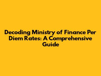 Hey there, finance enthusiasts and travel-savvy individuals! Ever wondered how the Ministry of Finance calculates those per diem rates? Well, buckle up, because we're diving deep into the world of per diem allowances, dissecting everything from the basics to the nitty-gritty details. Whether you're a government employee, a contractor, or just plain curious, understanding these rates is crucial for accurate budgeting, expense reporting, and, ultimately, getting the most out of your travel. This article will be your go-to resource, breaking down complex concepts into easy-to-digest chunks, so you can navigate the Ministry of Finance's per diem landscape with confidence. We will explore how these rates are determined, what they cover, and how they impact your finances. Let's get started!