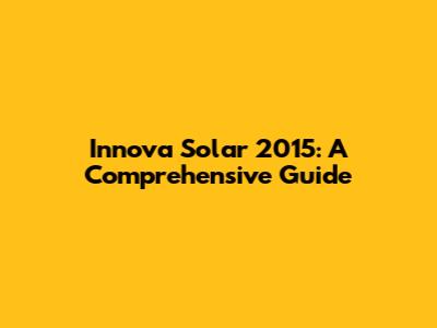 Innova Solar 2015: A Comprehensive Guide