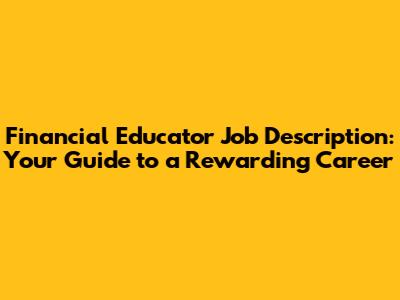 Becoming a financial educator is a fulfilling career path for those who are passionate about finance and helping others. It offers the opportunity to make a real difference in people's lives while building a stable and rewarding career. By understanding the responsibilities, skills, and qualifications needed, you can take the first steps towards achieving your career goals. So, if you're looking for a career that combines your love for finance with your desire to help others, a financial educator role might be the perfect fit for you. Good luck, and welcome to the world of financial education! We hope this guide has provided you with a comprehensive overview of the financial educator job description and inspired you to pursue this rewarding career. Remember, your journey to becoming a financial educator starts with a passion for helping others achieve their financial goals. Embrace the opportunity to learn, grow, and make a positive impact on the lives of many. Cheers!