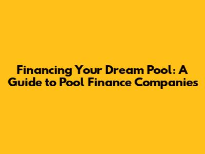 Financing Your Dream Pool: A Guide To Pool Finance Companies