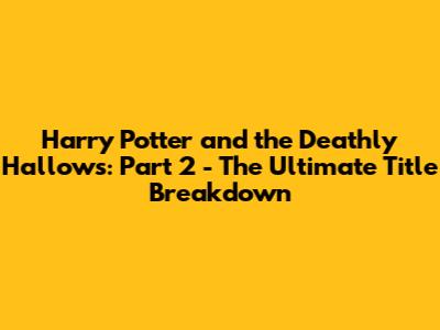 What's in a title, guys? For the grand finale of the Harry Potter saga, Harry Potter and the Deathly Hallows: Part 2, the title itself is a pretty big deal. It's not just a label; it's a culmination, a promise, and a direct nod to the epic conclusion we've all been waiting for. So, let's dive deep into why this title works so darn well and what it means for the end of an era. We're talking about the official title, the one that graced cinema screens and book covers, signaling the end of Harry's journey and the ultimate showdown with Voldemort. It's the second part of the final book, and the title makes that crystal clear, leaving no room for ambiguity as the story reaches its fever pitch. We're going to unpack this title, explore its significance, and maybe even reminisce about the emotional rollercoaster this movie and book series took us on. Get ready, because we're going all out on this one!