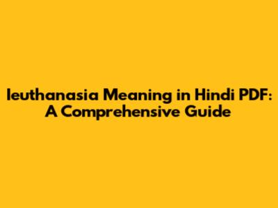 Ieuthanasia Meaning In Hindi PDF: A Comprehensive Guide