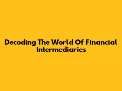 Decoding The World Of Financial Intermediaries