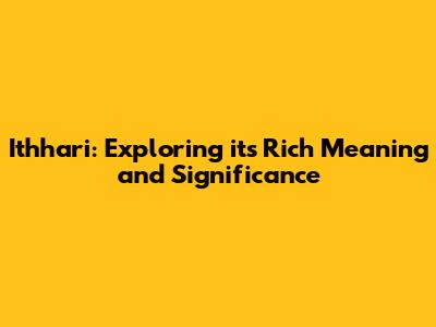Let's dive into the world of Ithhari, a concept with deep roots and significant meaning. In this article, we'll explore what Ithhari truly means, its historical context, and how it's relevant in today's world. Guys, get ready to expand your understanding and appreciate the richness of this concept!