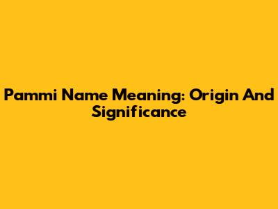 Pammi Name Meaning: Origin And Significance