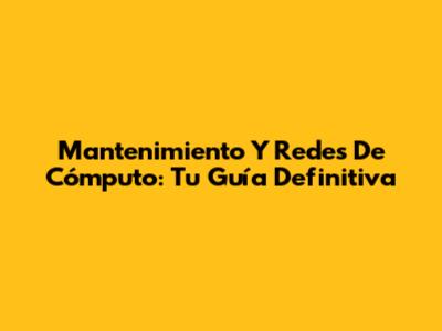 Mantenimiento Y Redes De Cómputo: Tu Guía Definitiva