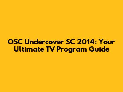 Hey everyone! Let's dive into the exciting world of OSC Undercover SC 2014 and get you all the juicy details about its TV program. If you're a fan of uncovering hidden talents, thrilling competitions, and a whole lot of entertainment, then you've come to the right place, guys! We're going to break down what made this show a must-watch, focusing specifically on the SC 2014 season and what you could expect to see on your screens. Get ready, because we're about to explore the ins and outs of this fantastic TV event.