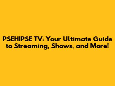 Understanding PSEHIPSE TV: What It Is and What It Offers