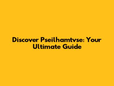 Discover Pseilhamtvse: Your Ultimate Guide
