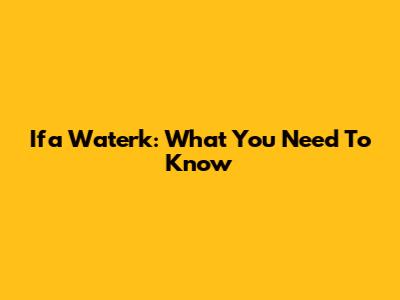 Ifa Waterk: What You Need To Know