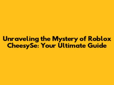 Unraveling the Mystery of Roblox CheesySe: Your Ultimate Guide