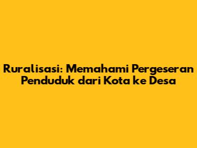Ruralisasi adalah fenomena yang kompleks dan dinamis, yang melibatkan perpindahan penduduk dari kota ke desa. Proses ini dipengaruhi oleh berbagai faktor, mulai dari ekonomi, sosial, hingga lingkungan. Ruralisasi dapat memberikan dampak positif, seperti peningkatan ekonomi lokal, revitalisasi budaya, dan pelestarian lingkungan. Namun, di sisi lain, ruralisasi juga dapat menimbulkan masalah, seperti peningkatan harga tanah, perubahan struktur sosial, dan tekanan terhadap sumber daya alam.