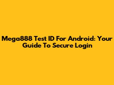 Mega888 Test ID For Android: Your Guide To Secure Login