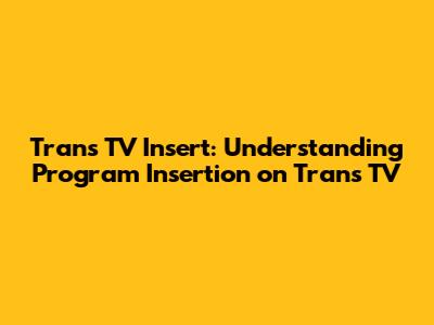 Hey guys! Ever wondered about those little segments that pop up during your favorite shows on Trans TV? Those are called Trans TV inserts, and they're a common part of the television landscape. In this comprehensive guide, we're going to dive deep into the world of program insertion on Trans TV, exploring what they are, why they're used, and what makes them so important in the broadcasting industry. So, buckle up and get ready to learn everything you need to know about Trans TV inserts!