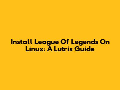 Install League Of Legends On Linux: A Lutris Guide