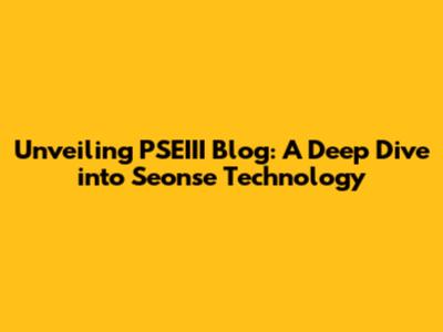 Unveiling PSEIII Blog: A Deep Dive Into Seonse Technology