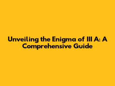 Deciphering the Basics: What Does III A Actually Mean?