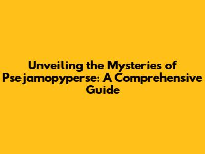 Unveiling The Mysteries Of Psejamopyperse: A Comprehensive Guide
