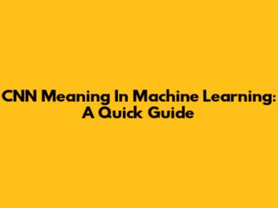 CNN Meaning In Machine Learning: A Quick Guide
