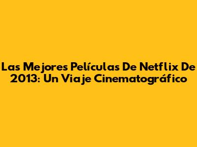 Las Mejores Películas De Netflix De 2013: Un Viaje Cinematográfico