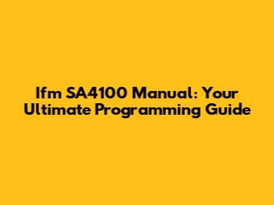 Ifm SA4100 Manual: Your Ultimate Programming Guide