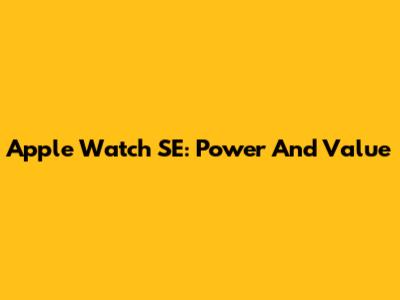Apple Watch SE: Power And Value